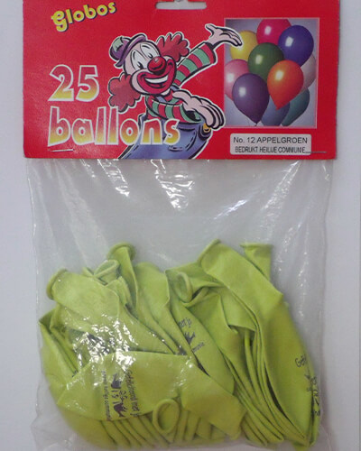 zakje met 25 ballons no. 12 deco appelgroen, éénzijdig bedrukt met Communie
